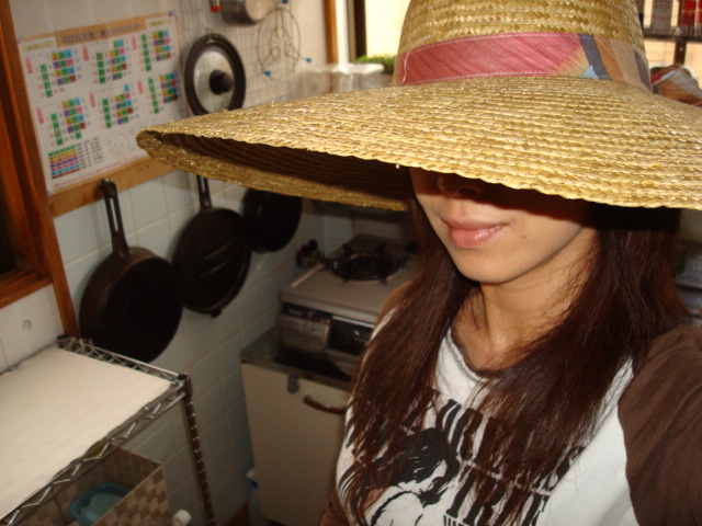 特大麦藁帽子買ってきましたのよ☆(598円なり)